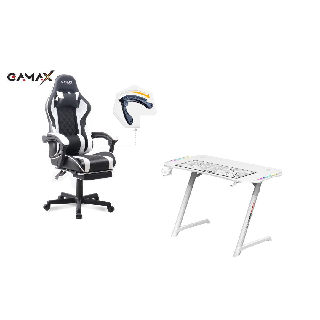 Upgrade your gaming setup with the Gamax Gaming Chair Model 1-LT001L and Gamax TD-03 Carbon Fiber Gaming Table. Designed for comfort, durability, and functionality, this bundle transforms your gaming experience. The chair features a linkage armrest and retractable footrest for ultimate relaxation. The table boasts a spacious carbon fiber surface, RGB lighting, and an integrated mousepad, making it the perfect partner for extended gaming sessions.