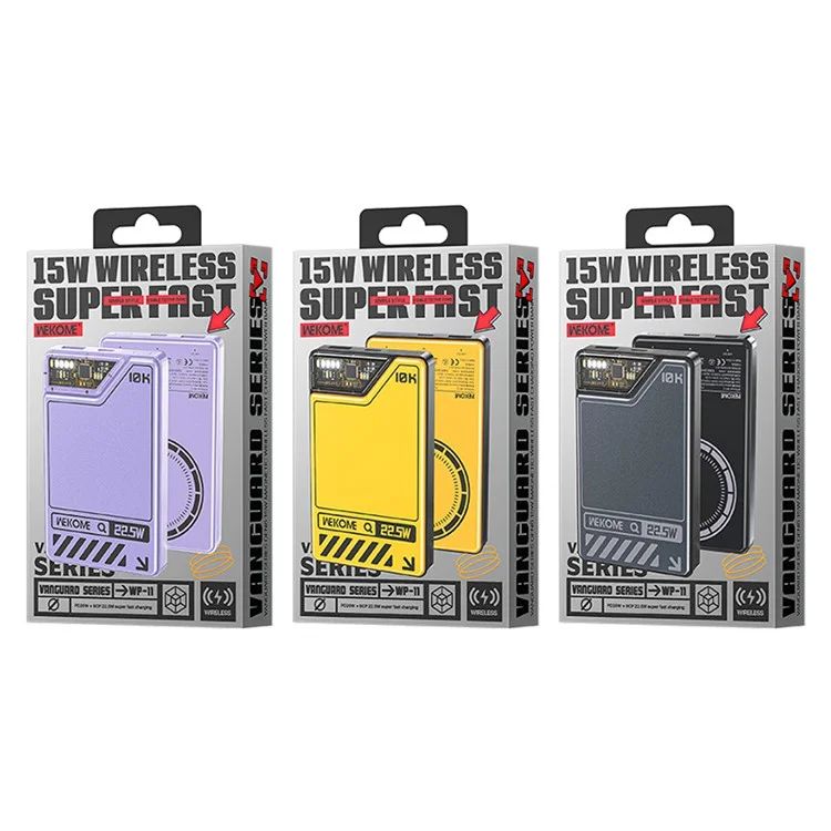 The WEKOME WP-11 Vanguard Series Magnetic Wireless Fast Charging Power Bank 15W 10000mAh offers a seamless charging experience with magnetic wireless charging and fast power delivery. Designed for convenience and efficiency, this portable power bank ensures that your devices stay charged wherever you go.
