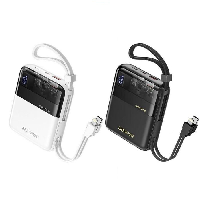 The Wekome WP-309 Power Bank delivers high-speed charging, multiple device support, and a sleek portable design. With 22.5W super-fast charging, a 10,000mAh battery, and built-in cables, this power bank ensures your devices stay powered up whenever you need them.